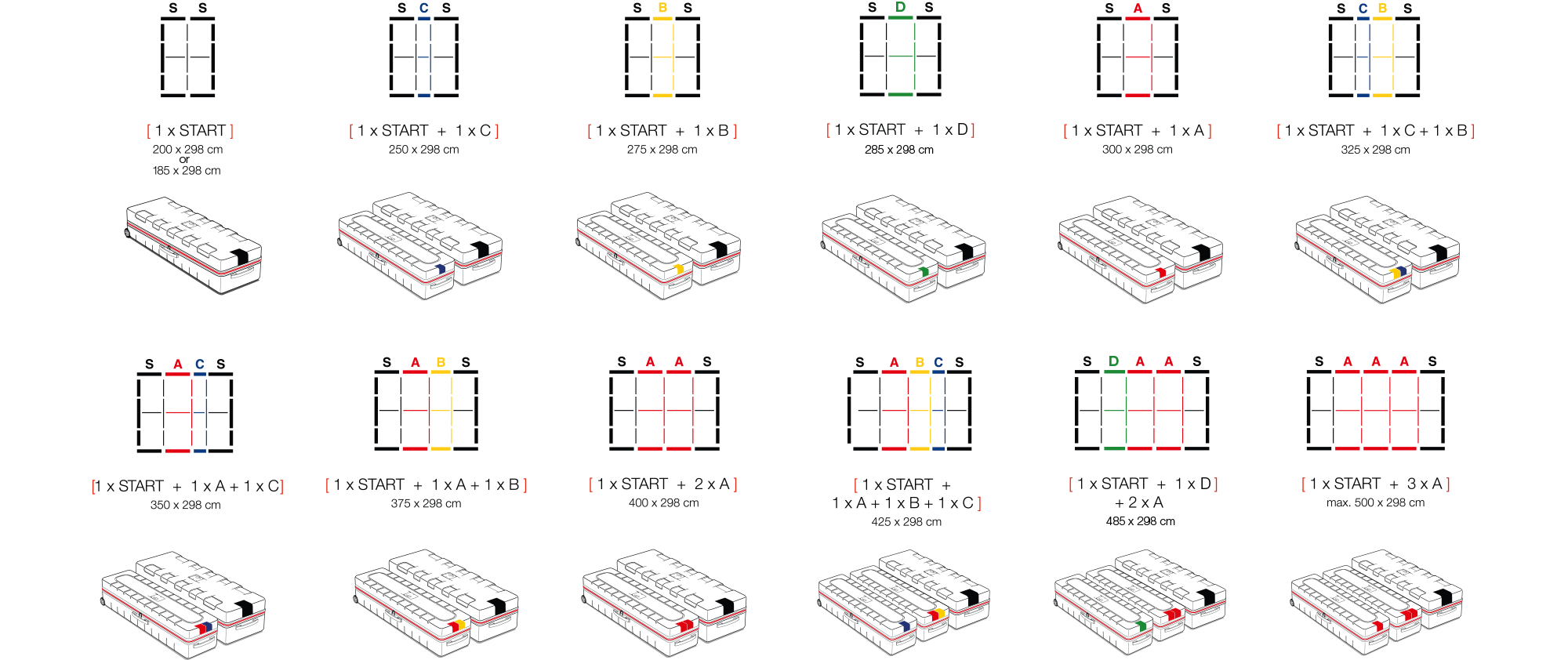 Nutzen Sie die modulare Welt von BIGUP mit einem 200 cm breiten Basismodul. Erweitern Sie Ihr System dann auf eine maximale Breite von 1000 cm mit 50, 75 oder 100 cm breiten Erweiterungsmodulen. Außerdem bieten wir verschiedene Höhen von 200, 230, 248 und 298 cm an. Verbinden Sie einfach die Erweiterungsmodule zwischen den beiden Basismodulen und das BIGUP passt sich flexibel jedem Raum an – und das alles ohne Werkzeuge!