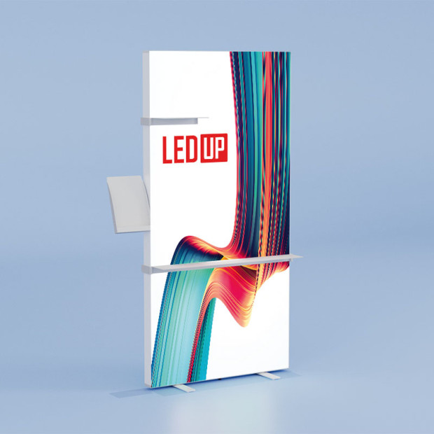 Ein Profil – Profilabmessung (Tiefe) 80 mm – wird für diesen Displayrahmen verwendet. MINI LEDUP® besteht aus hochwertigem, eloxiertem Aluminium und ist UV-beständig. Das Design und die Form sind sehr schlank und zeitlos elegant. Mit einer sorgfältigen Verarbeitung sind selbst die Kanten angenehm zu berühren. Die Verbindungen sind nach dem Aufbau fast unsichtbar. Ihre Digitaldrucke sehen aus jedem Blickwinkel ansprechend aus.
