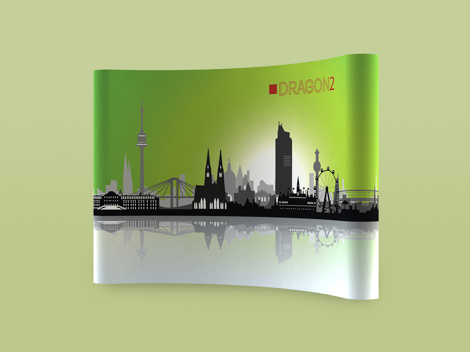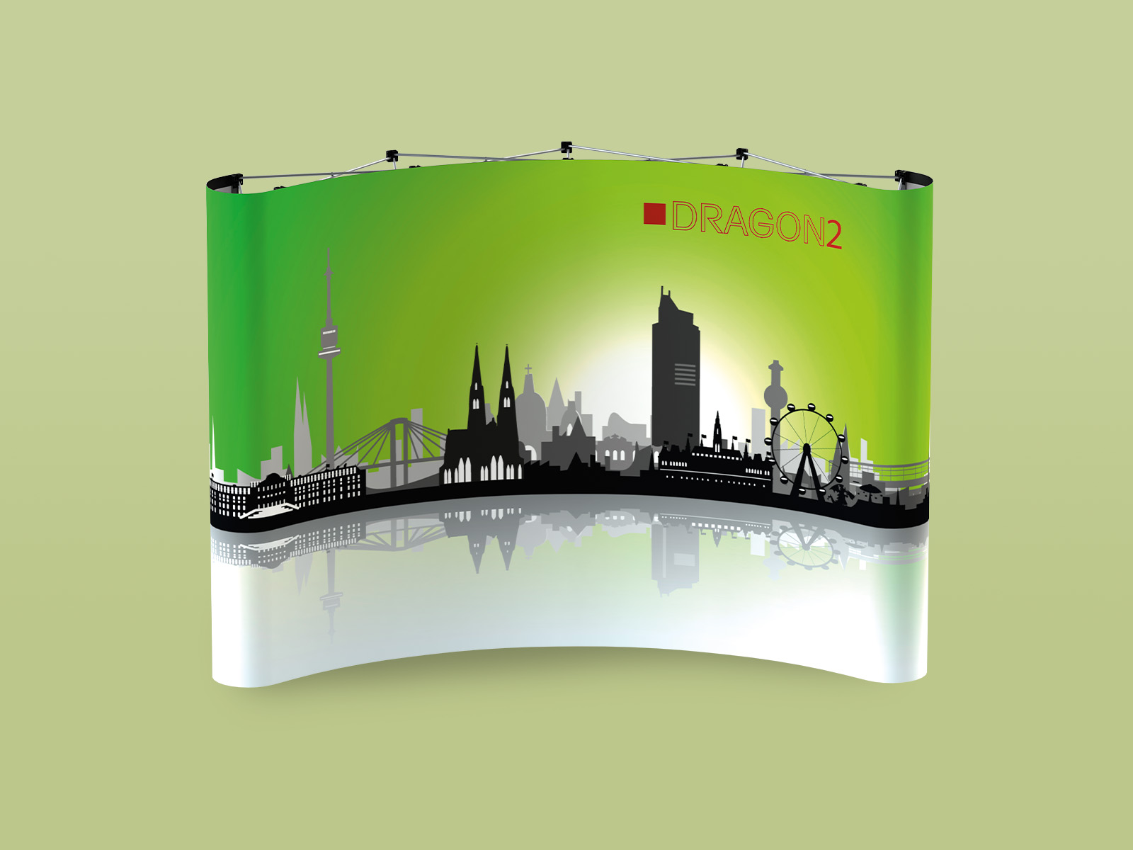 Wählen Sie zwischen geraden oder gebogenen Elementen oder einer Kombination aus beidem, um einen einzigartigen Look zu kreieren. Optional ist eine vollständige Umhüllung erhältlich, die die Vorder-, Seiten- und Rückseite abdeckt. Pop-up Dragon2 ist mit optional gebogenen oder geraden Endkappen erhältlich.