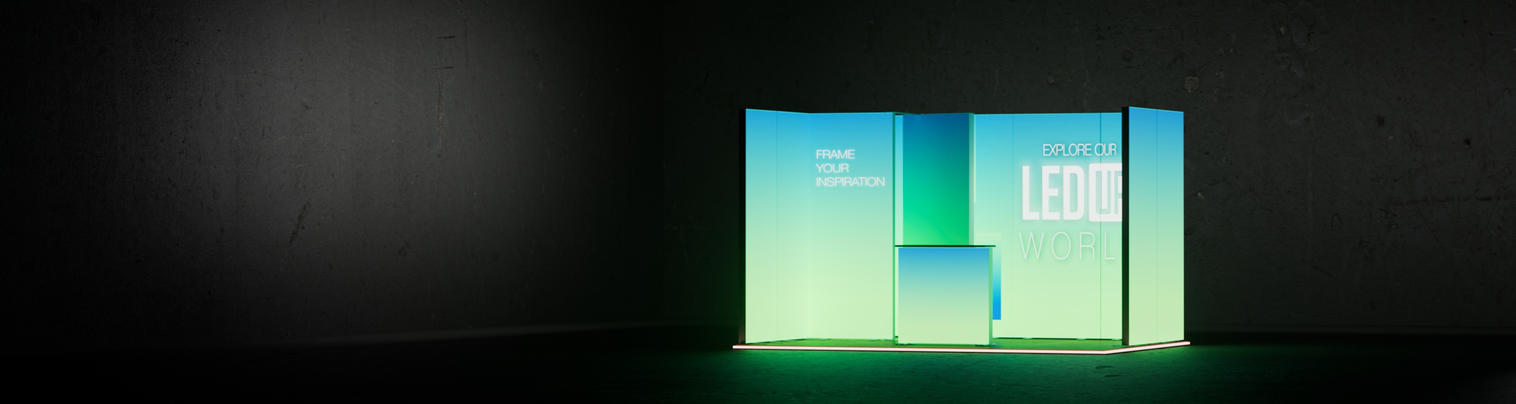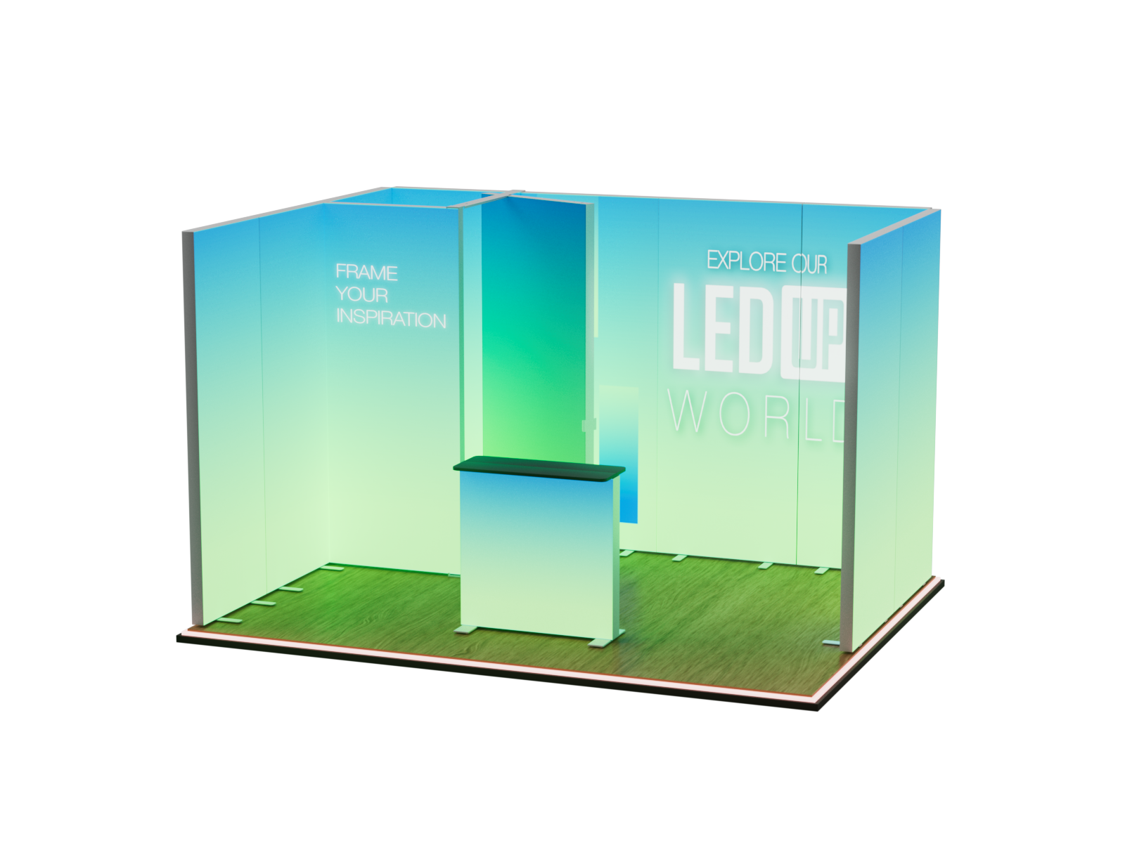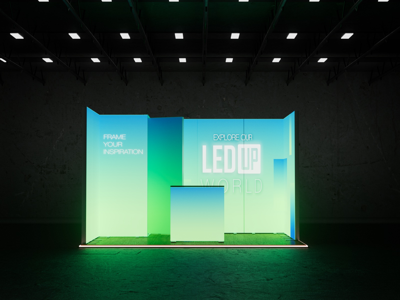 Das LEDUP Set DEAN 4x3 besteht aus 10 LEDUP Rahmen, 1 LEDUP Tür und 1 LEDUP Counter, wodurch es ideal für eine beeindruckende Darstellung in größeren Räumen ist. Mit der enthaltenen LEDUP Tür kann man leicht eine Koje oder einen privaten Bereich erstellen, was die Vielseitigkeit des Sets erhöht. Es bietet eine hervorragende visuelle Präsenz und ist vollständig an Ihre Markenanforderungen anpassbar. Geliefert in leichten ABS-Koffern, ist der Transport einfach und der Aufbau schnell und unkompliziert. Das LEDUP Set DEAN 4x3 ist ideal für Messen, Ausstellungen und Promotion-Events und ermöglicht hochwertige Darstellungen mit der zusätzlichen Option, einen privaten Raum zu schaffen.